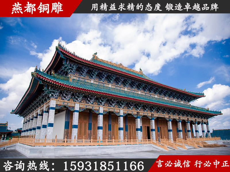 您當(dāng)前位置:燕都銅雕 >> 銅佛像雕塑 >> 燕都銅雕工程案例——建筑裝飾銅飾工程(蒙古源流大明殿銅包柱、洛陽瑤光殿銅板包梁貼金銅飾)