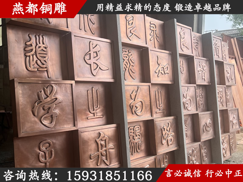燕都銅雕工程案例——山東煙臺致良中學(xué)墻面鍛銅浮雕墻面
